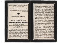 Gefallener 1. Weltkrieg; Eltern: Lehrer Gerhard Trimborn u. Maria Helene geb. Blumenkamp; Lehreseminar Kempen/Rh., Lehrerprüfung 1904; seit 1907 als Präparandenlehrer am Lehrerseminar Odenkirchen; 1912 Mittelschul- u. Rektorprüfung; zur Ausbildung als Seminarlehrer an die Universität Berlin; als Leutnant im 1. Weltkrieg; 13.9.1914 b. Berry au Bac verwundet; schweres Leiden; hoffte vergebens auf Wiederherstellung |