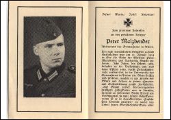 Gefallener 2. Weltkrieg; Eltern: Peter Malzbender u. Katharina geb. Engels; Abitur in Düren; Rückseite fehlt |