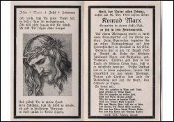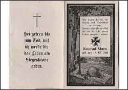 Gefallener 2. Weltkrieg; Heldenfriedhof Gemünd in der Eifel; Eltern: Ferdinand Marx u. Katharina geb. Dommers; Druck in Anrath |