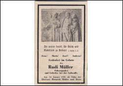 Gefallener 2. Weltkrieg; Fliegertod; Eltern: Heinrich Müller u. Berta geb. Laumen; Gymnasium in Opladen u. Köln; nach Abitur am 28.4.1943 als Freiwilliger zur Luftwaffe; Druck in Leverkusen-Schlebusch |