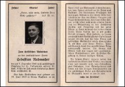 Gefallener 2. Weltkrieg; April 1942 Einberufung; an die Front nach Russland, dort erkrankt an schwerer Lungen- u. Rippenfellentzündung; trotz Behandlung in Zwickau u. Oeventrop und zu Hause in den beiden letzten Jahren konnte er sich nicht mehr davon erholen; zwei Brüder bereits gefallen |