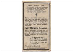 Gefallener 2. Weltkrieg; 45 J.; ∞ Elisabeth Sauer; 1 Tochter; Heimatgemeinde Hillscheid |