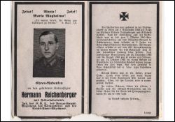 Gefallener 2. Weltkrieg; aus Felderhoferbrücke; Eltern: Richard Reichenberger u. Elisabeth geb. Hüskes; bis 1.10.1940 Verwaltungslehrling auf dem Bürgermeisteramt in Schönenberg; danach 2 J. Unteroffiziersschule Marienwerder; zweimal verwundet: 22.12.1942 u. 28.8.1943; Friedhof in Now. Scheblitschi |