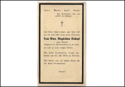 Witwe; Mitgl. Mütterverein an St. Peter |
