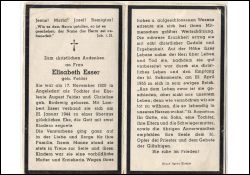 Eltern: August Felder u. Christine geb. Bodewig; ∞ 22.1.1944 Lambert Esser; 2 K.; Druck in Elsdorf |