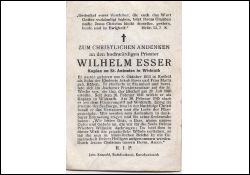 Opfer 2. Weltkrieg: Tod bei Fliegerangriff; Eltern: Jakob Esser u. Maria geb. Rüben; Priesterweihe Aachen 28.7.1940; seit 26.2.1941 Kaplan in Wickrath |
