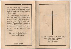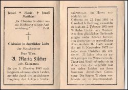 Längeres, schmerzliches Leiden; ∞ 2.2.1906 Wilhelm Fischer aus Morken, † 9.11.1923 durch Unfall; 6 K., davon 4 jugendl. †; die letzten Wochen verbrachte sie in Kirchtroisdorf, gepflegt von der Tochter |
