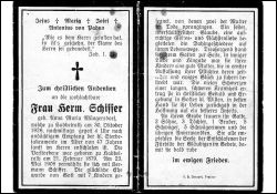 ∞ 23.5.1906 Hermann Schiffer; 7 K., davon 2 †; lange, schwere Krankheit |