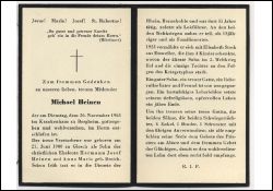 Eltern: Hermann Josef Heinen u. Anna Maria geb. Broich; 35 Lokführer bei der Rhein. Braunkohle; ∞ 1923 Elisabeth Stock aus Etzweiler; 4 K.; ältester Sohn im 2. Weltkrieg gefallen; 1 Tochter † an Folgen des Kriegstyphus; hartnäckiges Leberleiden |