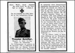 Gefallener 2. Weltkrieg; Eltern: Hermann Schiffer u. Anna Maria geb. Müngersdorf; alteingesessenes Bauerngeschlecht; Mai 1941 Einberufung; sein bruder kämpft auch an der Ostfront |