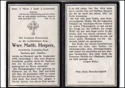 ∞ 18.9.1885 Cornelius Kind, † 17.12.1904; 4 K., davon 2 †; ∞ Mai 1914 Matthias Herpers, † April 1917; zuletzt schweres Leiden |