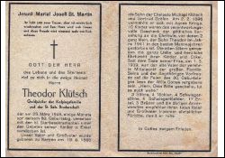 Goldjubilar der Kolpingsfamilie u. der St. Sebastianus-Bruderschaft; Eltern: Michael Klütsch u. Gertrud geb. Gräfen; ∞ 2.2.1896 Agnes Krings, † 1.3.1939; 10 K., davon 2 früh †, Sohn Theodor 1941 im 2. Weltkrieg gefallen; |