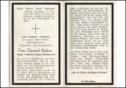 Eltern: Peter Josef Lieven u. Magdalena geb. Herzogenrath; ∞ 4.2.1896 Peter Köcher aus Kirchtroisdorf, † 29.1.1944; 11 K.; 1 Sohn im 2. Weltkrieg gefallen; Druck in Bedburg/Erft |