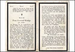 Lange, schwere Krankheit; ∞ 9.4.1907 Michael Königs; 4 K., davon 2 †; Druck in Grevenbroich |
