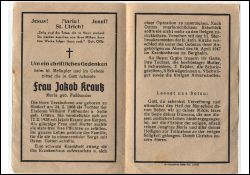 Eltern: Wilhelm Faßbender u. Sofie geb. Gräfen; ∞ 12.2.1928 Jakob Krautz aus Kerpen; Tod nach Operation; Druck in Kerpen |