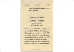 ∞ 20.9.1932 Kaufmann Heinrich Lepper, † 15.1.1970; 1 überlebende Tochter; Druck in Elsdorf |