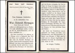 ∞ 12.6.1894 Heinrich Mermagen aus Glessen; 7 K., davon 1 früh †; Vater im 1. Weltkrieg am 10.1.1916 gefallen; langes Krankenlager; Druck in Frechen |