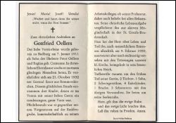 Eltern: Peter Oellers u. Regina geb. Cremanns; ∞ 21.10.1932 Gertrud esser aus Rommerskirchen; 3 K.; beschäftigt auf der Roddergrube; Mitgl. St. Ursula-Bruderschaft; Druck in Bedburg |