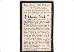 Jungfrau; Eltern: Wilhelm P∞k u. Anna Maria geb. Breuer; 1 Bruder noch nicht vom Kriegsgeschehen zurück; Druck in Lechenich |