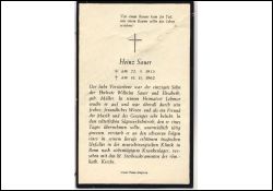 Eltern: Wilhelm Sauer u. Elisabeth geb. Müller; wollte das väterliche Sägewerk übernehmen; Tod durch Berufsunfall; Druck in Siegburg |