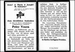 63 J.; Eltern: Theodor Vosen u. Margarete geb. Mock; lebte mit seinen ebenfalls unverheirateten Geschwistern auf dem elterlichen Hof; tückische, schmerzhafte Krankheit |