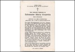 Maria Vinzentia, Sr., geb. Schommer | Vorname: |