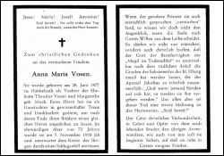 Eltern: Theodor Vosen u. Margarethe geb. Mock; diente als Haustochter ihren Eltern und nach deren Tod ihren beiden Brüdern; Schlaganfall |