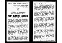 Fast 78 J.; ∞ 10.2.1881Joseph Vossen, vor 15 J. † ; 8 K., davon 3 † ; 15 J. Witwe; litt 14 J. an einer schmerzlichen Krankheit (Habbelrath) |