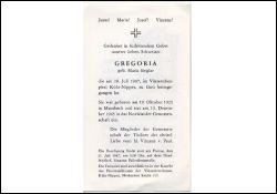 Gregoria, Sr., geb. Sieglar | Vorname: |