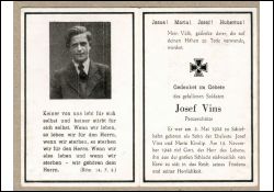 Gefallener 2. Weltkrieg; Eltern: Josef Vins u. Maria geb. Kivelip |