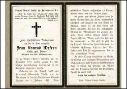 Herzlähmung; ∞ 1.2.1887 Konrad Wefers; 10 K., davon 1 †; Mitgl. Mütterverein |