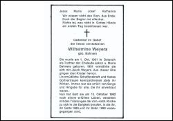 Eltern: Jakob u. Maria Bahners; ∞ 1931 Jakob Weyers, † 1980; 3 K., davon 1 Sohn 1990 † |