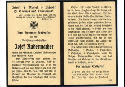 Gefallener 2. Weltkrieg; Eltern: Lambert Radermacher u. Elisabeth geb. Rath; |