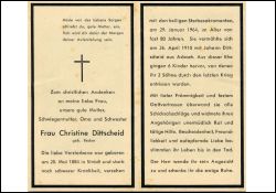 ∞ 26.4.1910 Johann Dittscheid aus Asbach; 6 K., davon 2 Söhne im 2. Weltkrieg gefallen; |