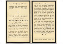 Langes, schweres Leiden; ∞ 8.9.1899 Heinrich Krug aus Glessen; 11 K., davon 5 †; unterstützte ihren Mann in dessen Baugeschäft; |