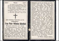 ∞ 26.6.1886 Peter Wilhelm Odenthal; 5 K., davon 2 mit 16 u. 37 J. †; |