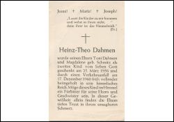 Eltern: Toni Dahmen u. Magdalene geb. Schmitz; Tod durch Verkehrsunfall |