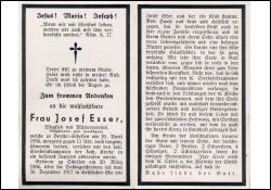 Mitgl. Mütterverein; langes, schweres Leiden; ∞ 16.12.1917 Josef Esser; 1 K. |