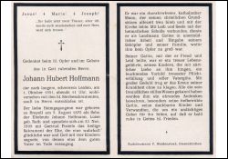 Eltern: Johann Hoffmann u. Luise geb. Rath; ∞ 22.11.1909 Gertrud Postels; 4 K., davon 1 †; langes, schweres Leiden; Druck in Giesenkirchen |