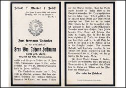 Mitgl. Mütterverein; ∞ Johann Hofmann, † 1889; 10 K., davon 3 †; Landwirtschaft; Druck in Giesenkirchen |