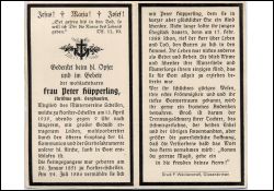 Längeres Leiden; ∞ 24.7.1886 Peter Hüpperling, schon bald am 17.2.1888 † ; 1 K.; Mitgl. Mütterverein Schelsen |