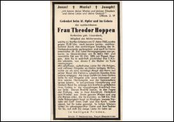 Mitgl. Mütterverein; ∞ 10.10.1896 Theodor Hoppen; 3 K., davon 2 †; stand ihrer Tochter in der langjährigen Krankheit treu zur Seite |