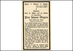 Längeres, schwere Leiden; Eltern: Werner Netzer u. Anna Katharina Hubertine geb. Bock; ∞ 6.5.1918 Johann Meyers, † 26.3.1944; Mitgl. Mütterverein |
