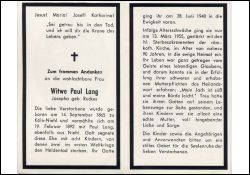 ∞ 19.2.1892 Paul Lang aus Niehl, † 28.6.1940; 8 K., davon 2 im 1. Weltkrieg gefallen; |