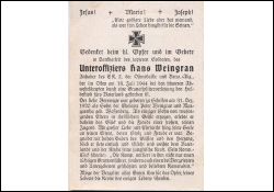 Gefallener 2. Weltkrieg; Eltern: Peter Weingran u. Margaretha geb. Wassenberg; |