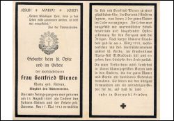 Mitgl. Mütterverein; Eltern: Johann Kleinen u. Helene geb. Stevens; ∞ 17.5.1913 Gottfried Wienen; 5 K., davon 3 †; |