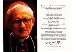Pfarrer in Heilig Kreuz in Trier; Bischof von Münster; ab 1969 Erzbischof von Köln und Kardinal (Text auf dem Sterbebett, 2 Tage vor seinem Tod, verfaßt) |