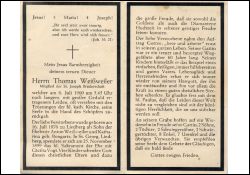Mitgl. St. Joseph-Bruderschaft; Langes Leiden;Eltern: Anton Weißweiler u. Katharina geb. Bongartz; ∞ in Liedberg 25.11.1899 Cäcilia Vogt; 4 K.; Diamantene Hochzeit |