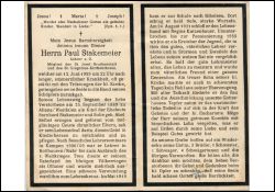 Lehrer a.D.; Mitgl St. Josef-Bruderschaft u. St. Gregorius-Kirchenchor; Eltern: Bernhard Stakemeier u. Sofie geb. Abel; Lehrerseminar Kempen 1906-09, danach Lehrer in Rotthausen/Ruhr bis 1914; als Soldat im 1. Weltkrieg schwer verwundet; Mai 1919 als Lehrer nach Schelsen bis 1955; ∞ 24.8.1921 Regina Katzenbauer; Verdienste um neues Gotteshaus; |