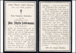 ∞ 19.11.1887 Johann Christian Schürmanns; 11 K., davon 5 †, davon 1 sohn im 1. Weltkrieg gefallen; vor 2 J. Schlaganfall, seitdem kränkelnd |